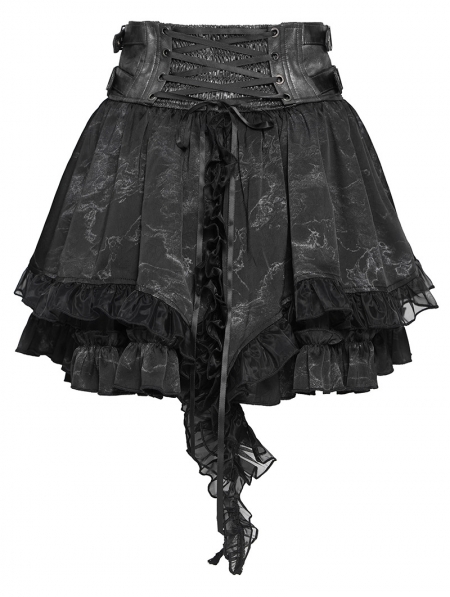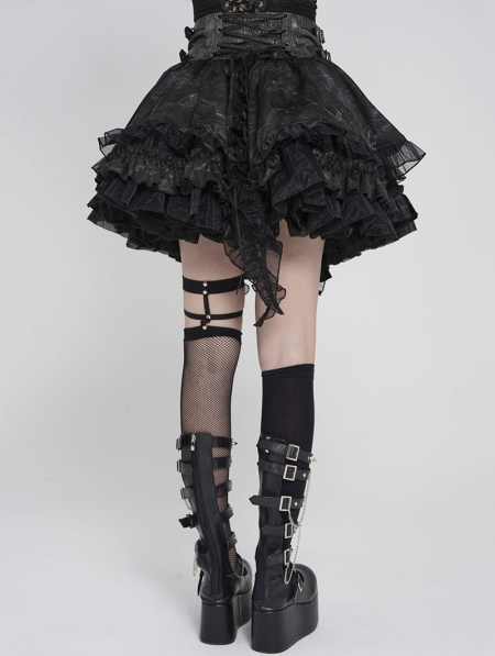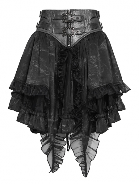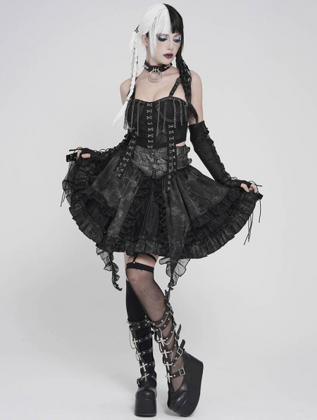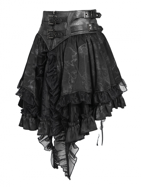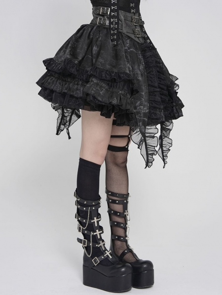 Grey and Black Gothic Layered Ruffle Irregular Skirt