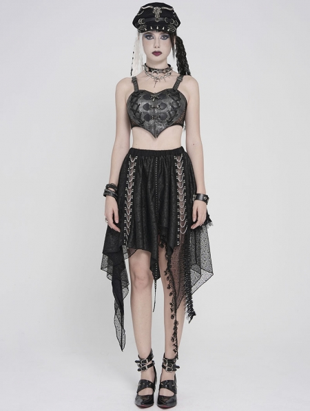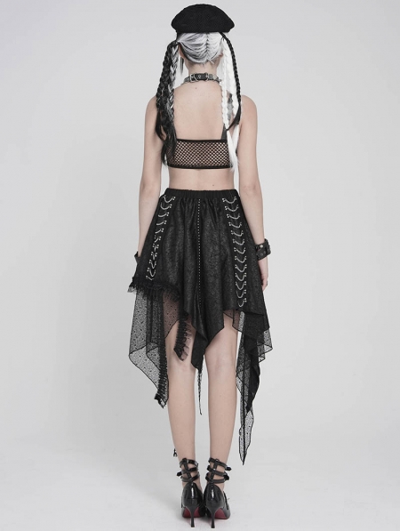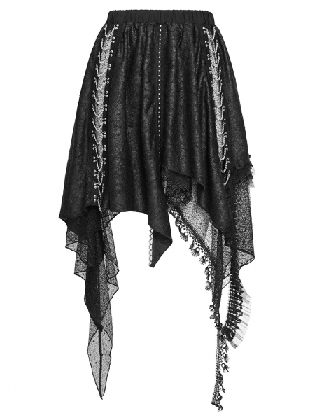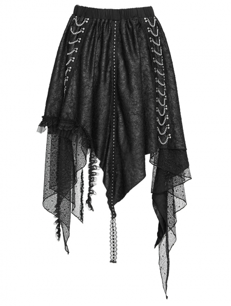Black Gothic Punk Chained Slit Irregular Ruffle Skirt
