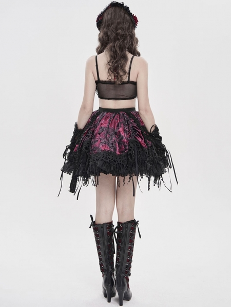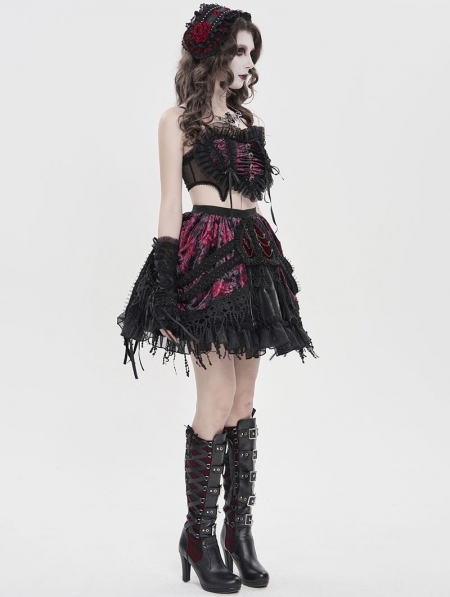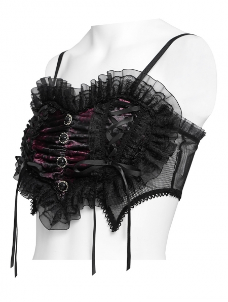 Black and Red Gothic Velvet Heart Shape Cami Crop Top for Women