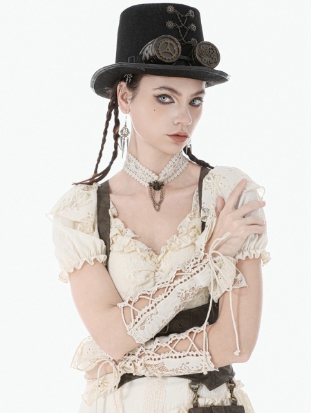 Ivory Steampunk Gothic Lace Layered Ribbon Gloves