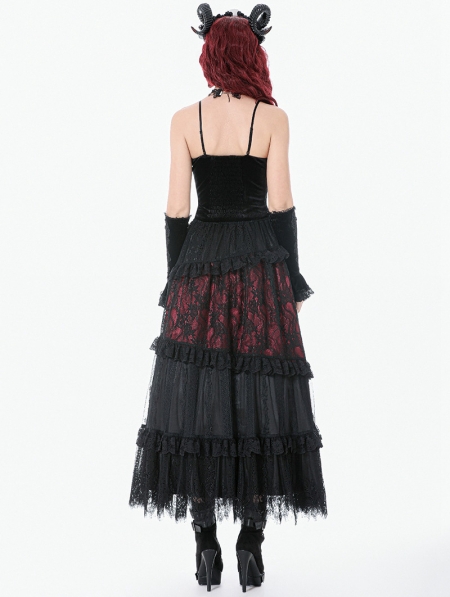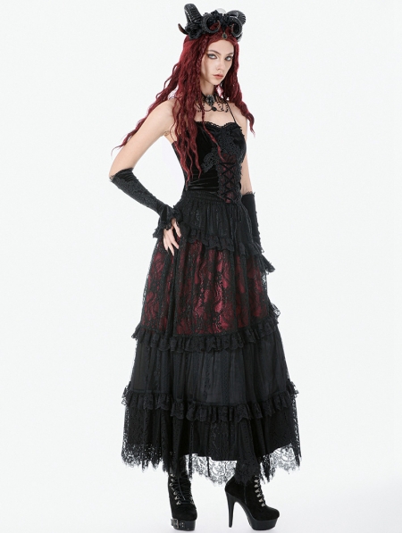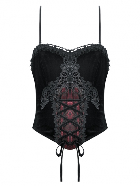 Black and Red Gothic Velvet Lace Appliqued Corset Top for Women