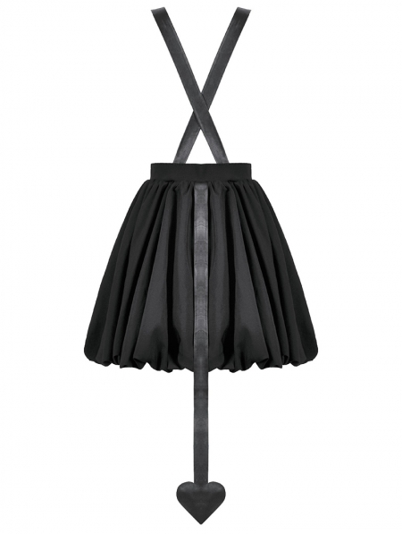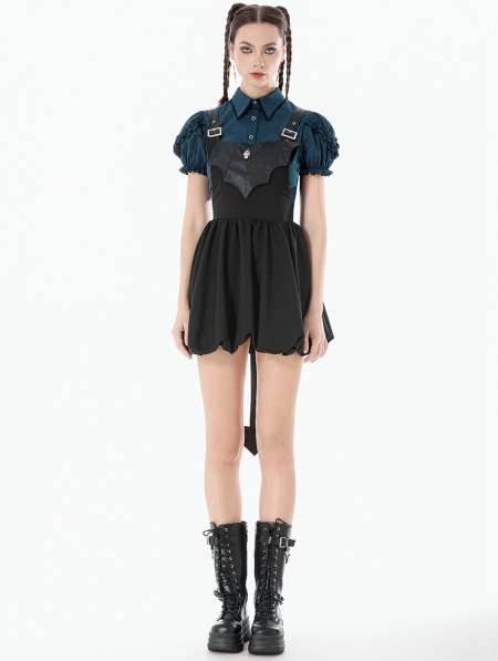 Black Gothic Bat Wing Buckle Strap Short Dress with Tail