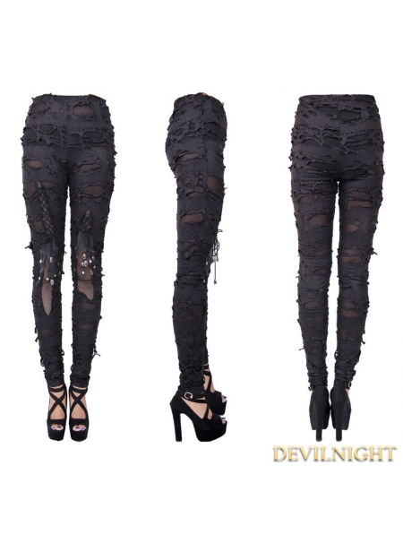 Black Knitting Hole Gothic Punk Legging for Women