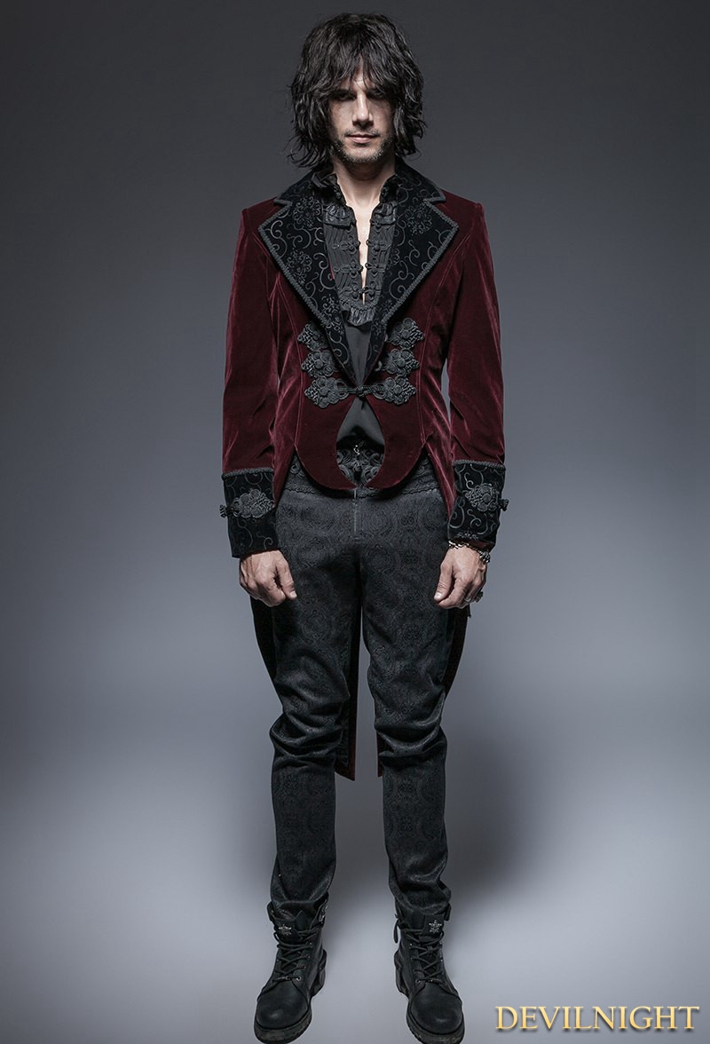 Wine Red Gothic Gentle Jacket with Scissors Tail