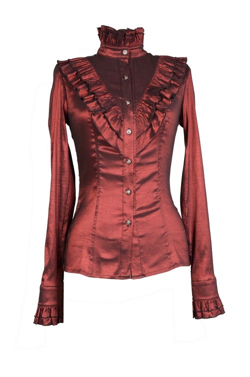 Red High Collar Long Sleeves Ruffle Gothic Blouse for Women