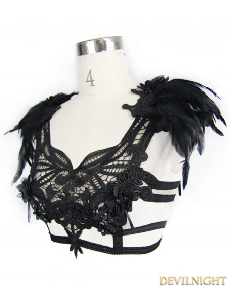 Black Gothic Feather Harness Bra