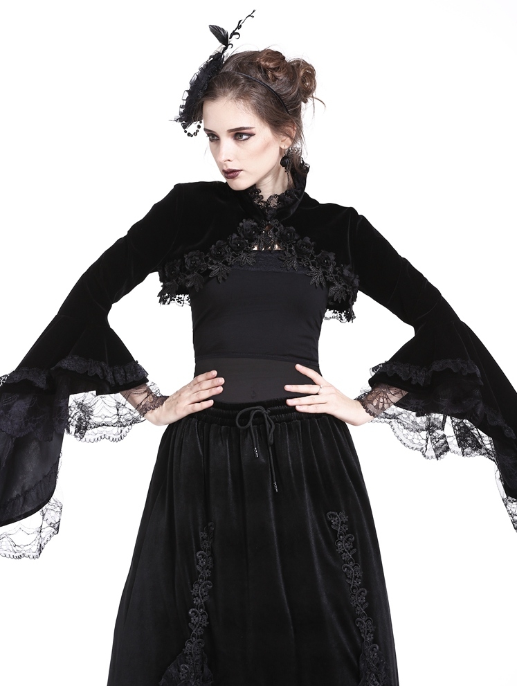 Black Gorgeous Gothic Velvet Short Cape Jacket for Women