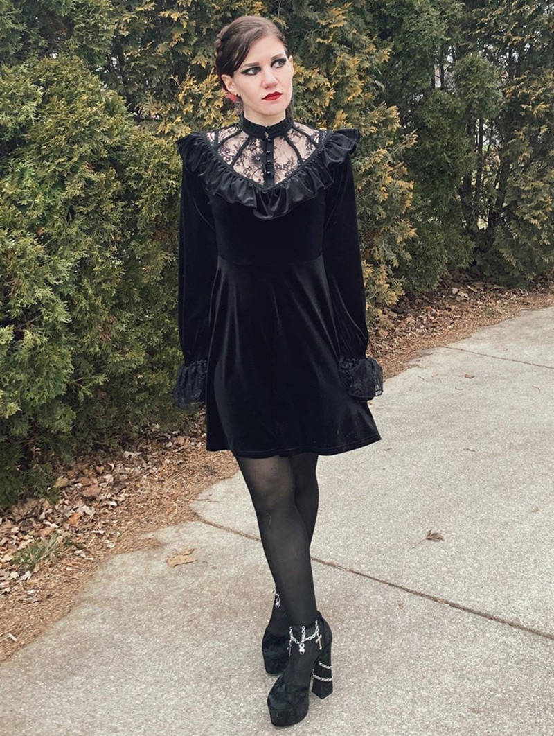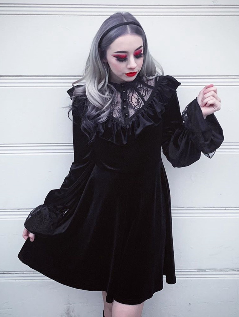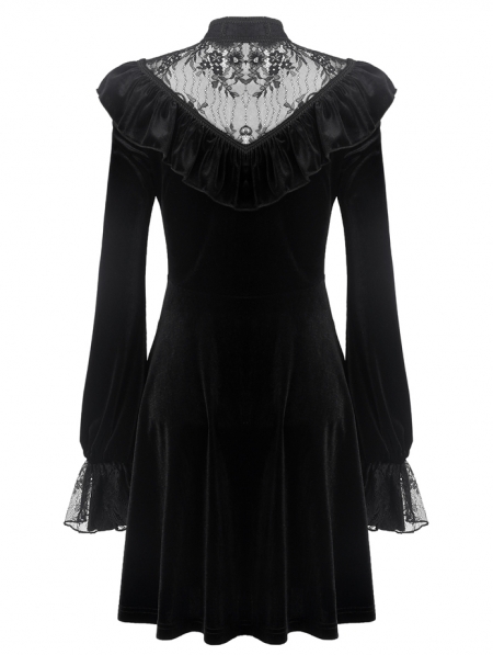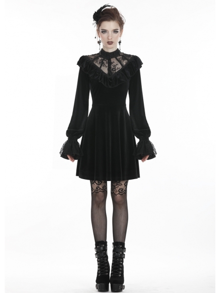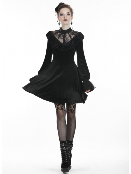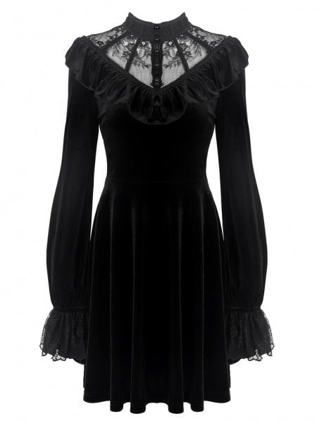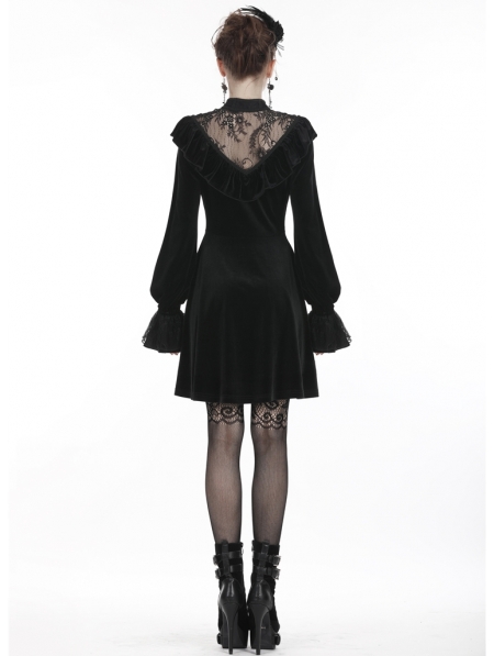 Black Gothic Lolita Long Sleeve Velvet Short Dress
