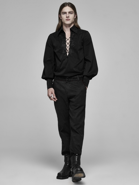 Black Gothic Fire Dragon Long Sleeve Shirt for Men