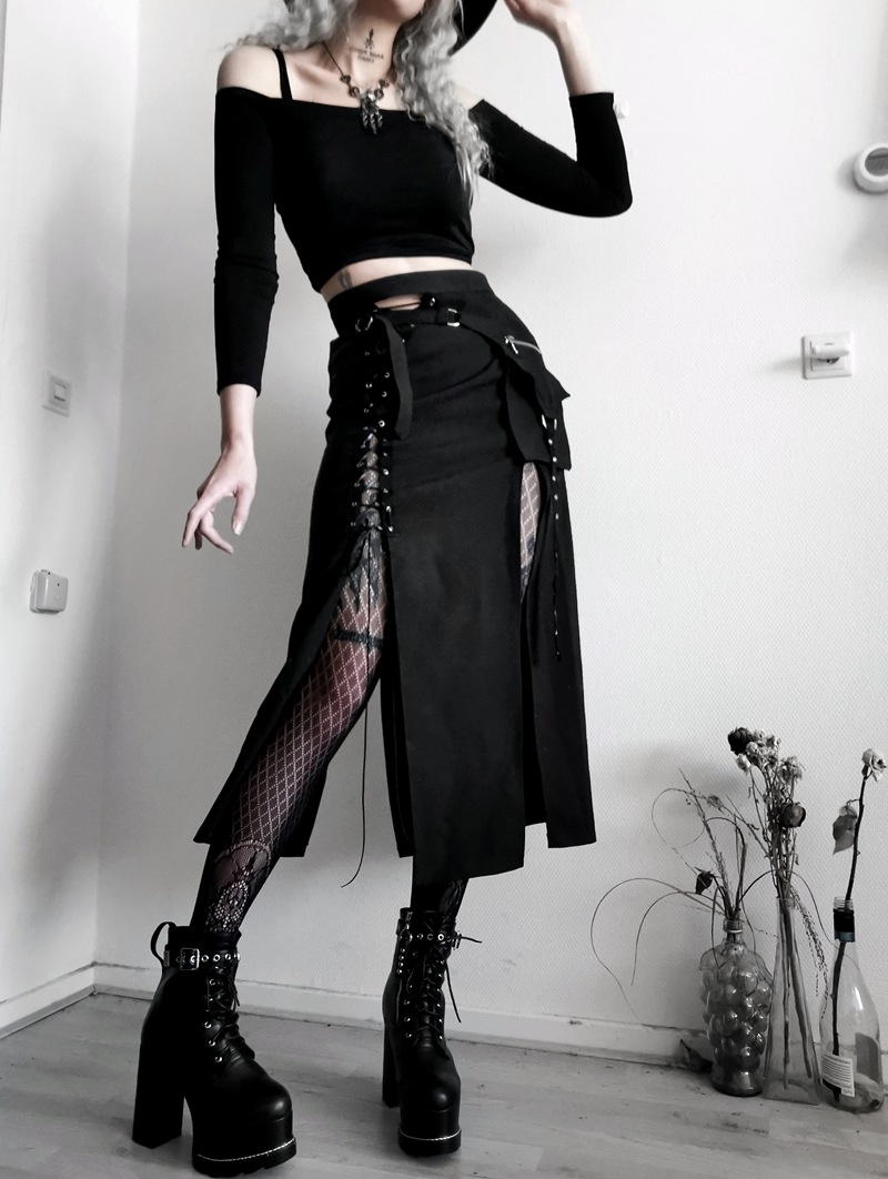 Black Gothic Punk Sexy Slit Irregular Long Skirt