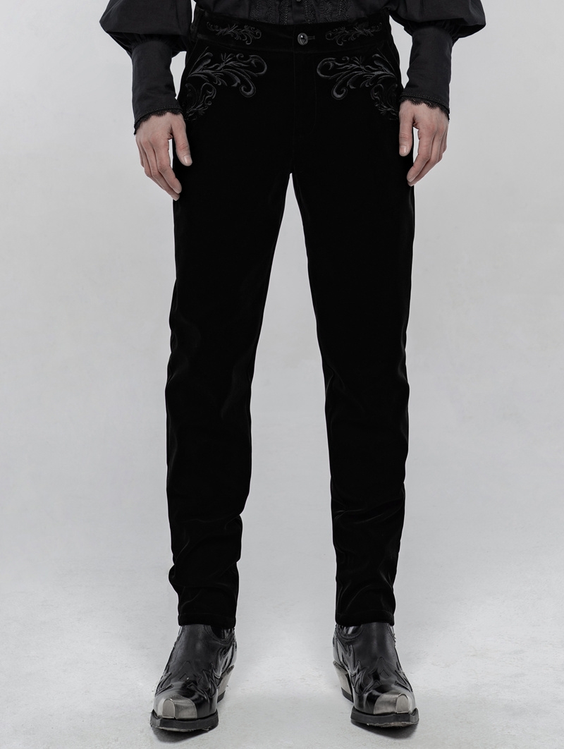 Black Retro Gothic Embroidered Trousers for Men