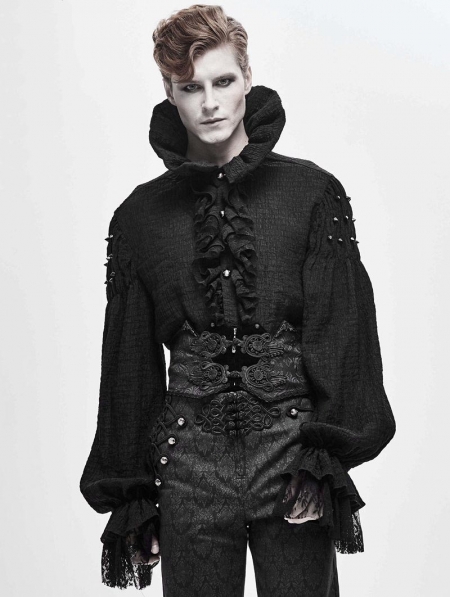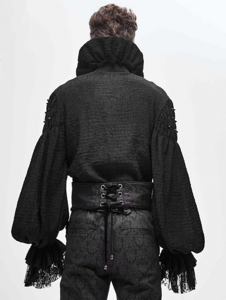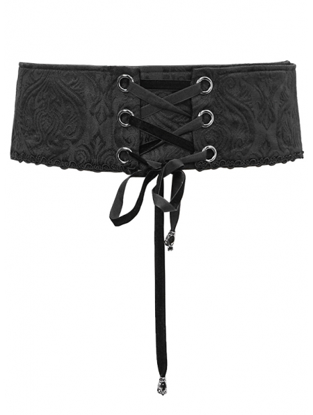 Black Retro Gothic Velvet Lace Applique Waistband for Men