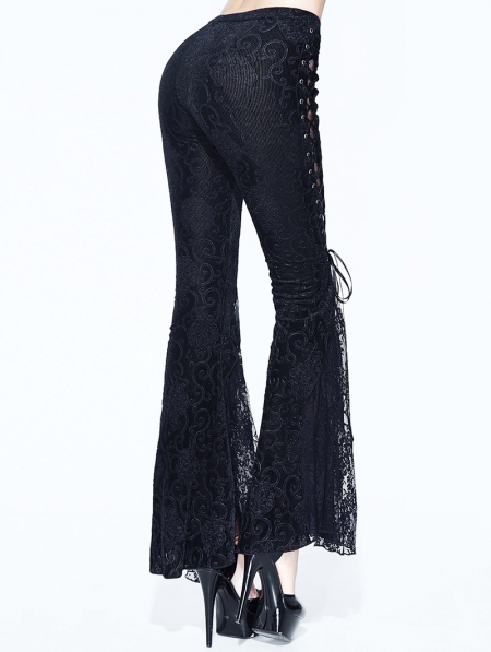 Black Daily Wear Gothic Jacquard Flared Trousers for Women
