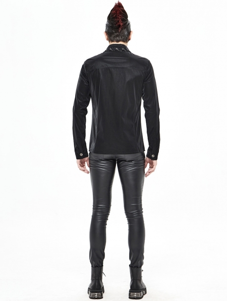 Black Gothic Punk Rock Long Sleeve Shirt for Men