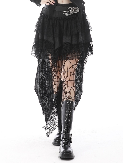 Black Gothic Spider Web Printting Perspective Long Sleeve T-Shirt for Women