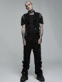 Black Gothic Punk Hollow Out Rivet Belt Asymmetric Vest for Men
