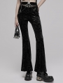 Black Gothic Dark Printed Velvet Flared Pants for Women