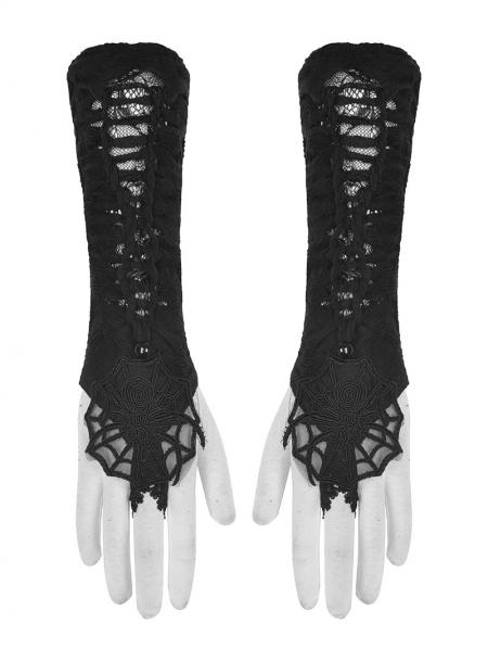 Black Gothic Lace Cobweb Gloves for Women