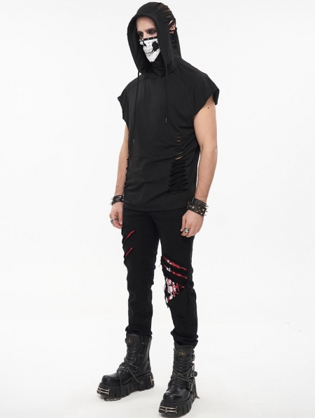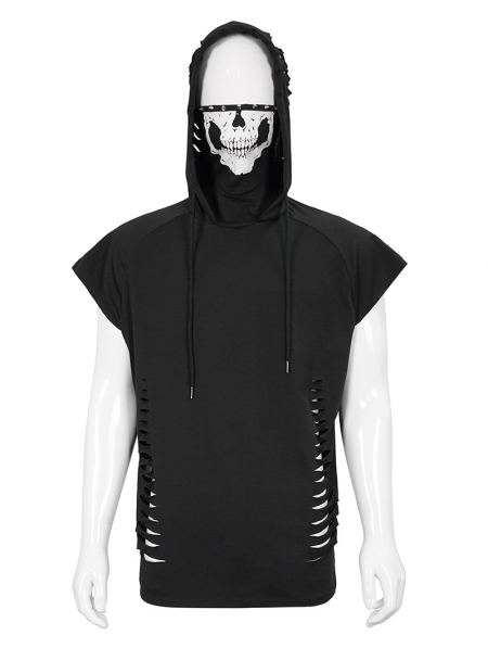 Black Gothic Punk Hole Hooded Short Sleeve T-Shirt for Men