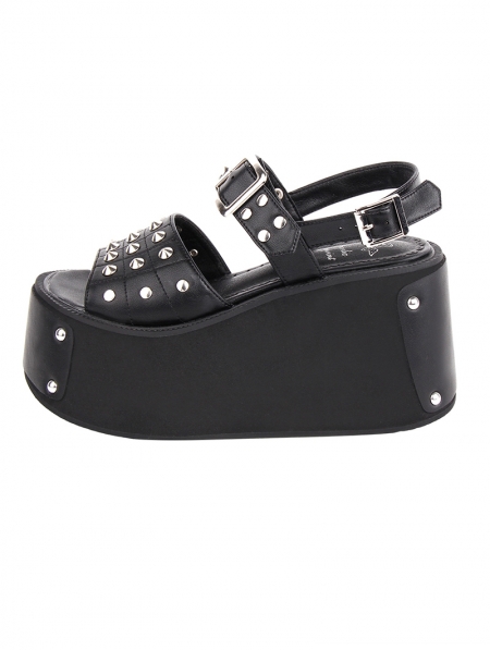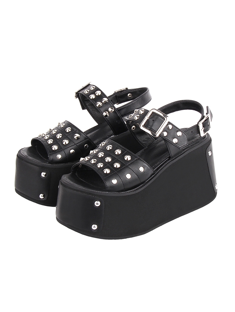 Black Gothic Punk Open Toe Ankle Strap Studded Platform Sandals