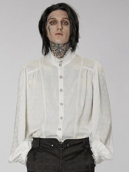 White Vintage Gothic Dragon Scale Jacquard Long Sleeve Shirt for Men