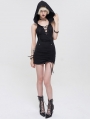 Black Gothic Punk Skull Drawstring Sexy Hooded Bodycon Dress