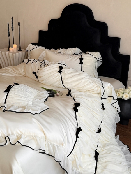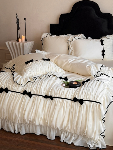Ivory Retro Bow Pleated Ruffle Bedding Set