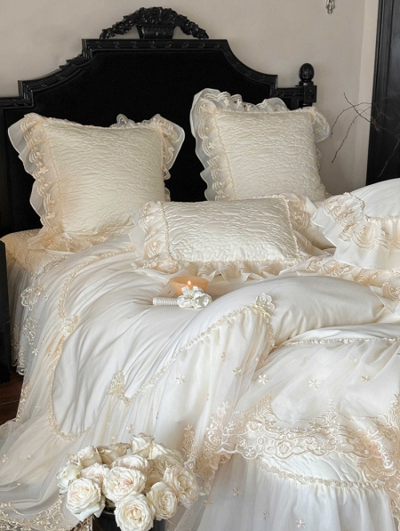 Ivory Embroidered Floral Lace Romantic Comforter Set