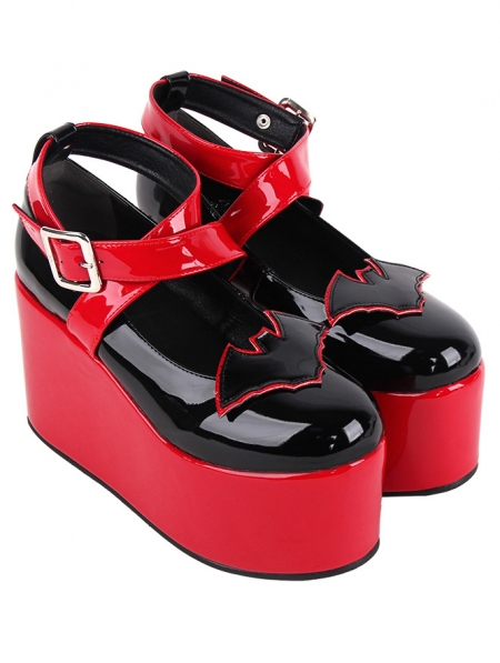 Black and Red Gothic Batwing High Platform Lolita Shoes