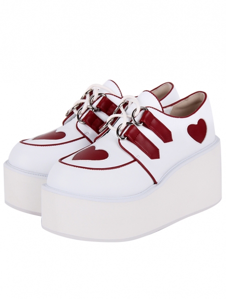 White and Red Heart Strappy Wedge Platform Sweet Lolita Shoes
