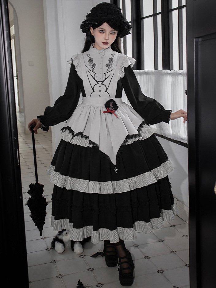 Black Rose and Spider Web Embroidery Gothic Lolita OP Dress