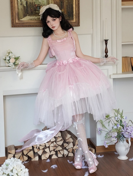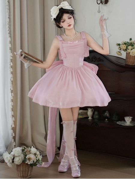 Pink Shimmering Bow Classic Lolita JSK Dress Full Set
