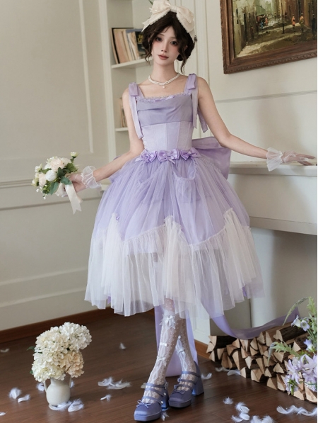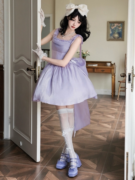 Purple Shimmering Bow Classic Lolita JSK Dress Full Set