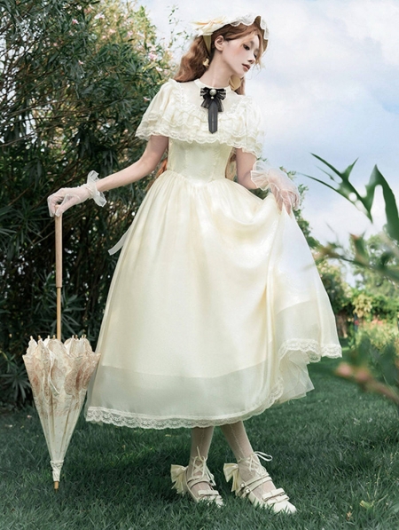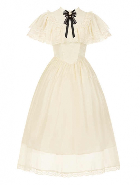 Beige Edwardian Illusion Square Neck Classic Lolita OP Dress