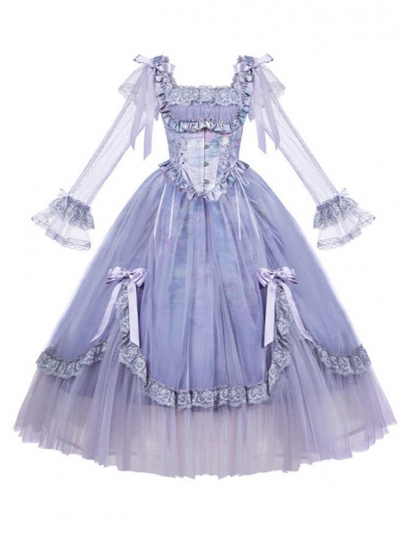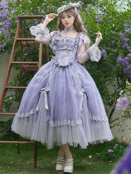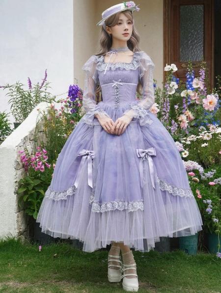 Purple Oil Painting Print Classic Lolita Long Sleeve OP Dress Set