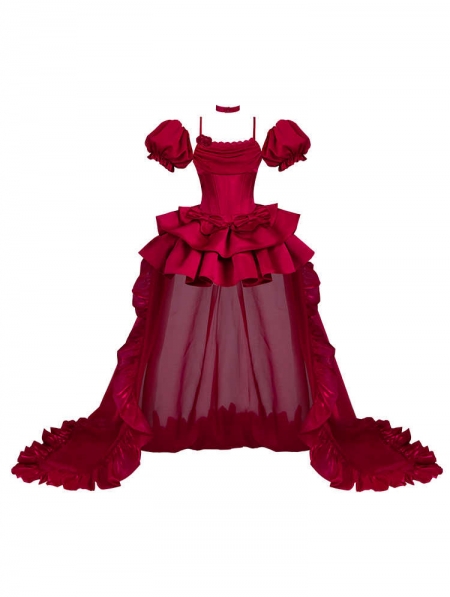 Red Elegant Cowl Neck Gothic Lolita JSK Dress Full Set