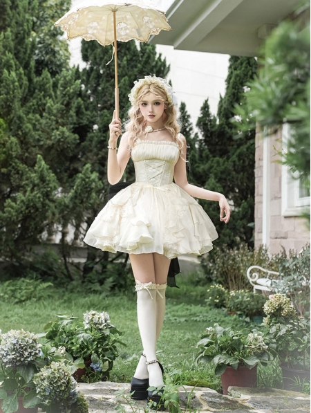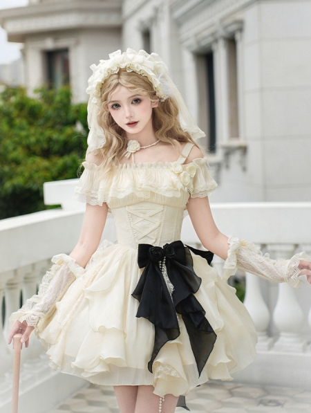Beige Ruffle Layered Classic Lolita JSK Short Dress Set