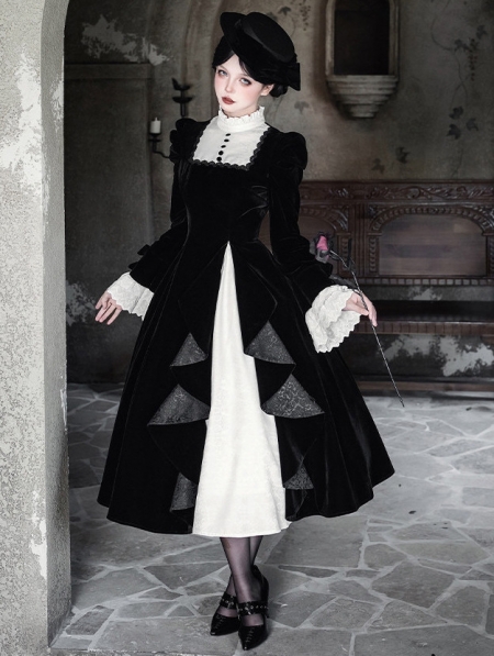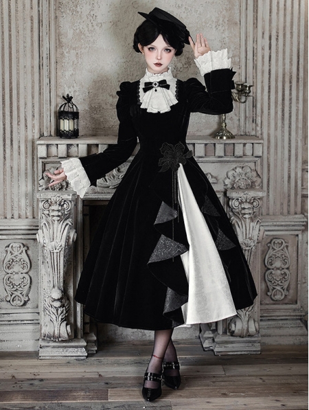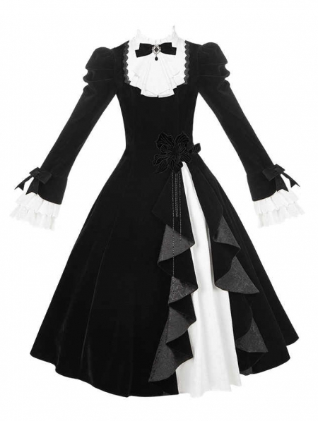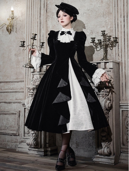 Black and White Gothic Asymmetrical Ruffled Lolita OP Dress