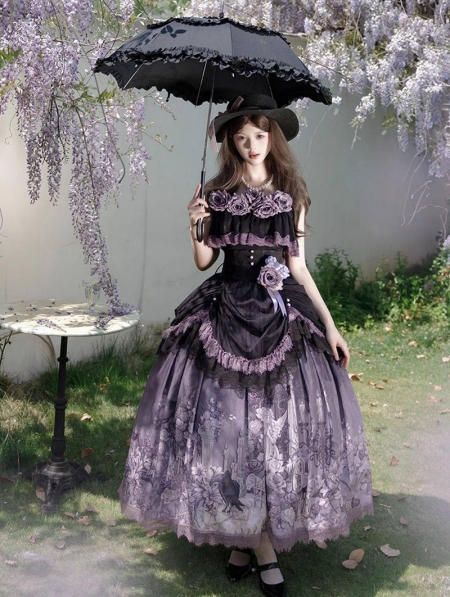 Black and Purple Ruffled Elegant Gothic Lolita Top and Skirt Set
