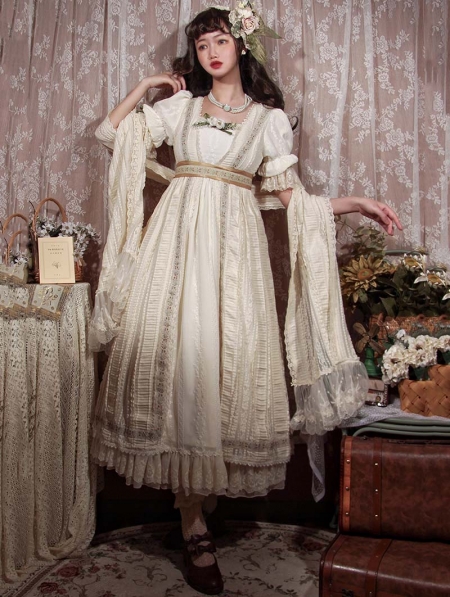 Sally Garden White Lotus Sleeve Empire Waist Classic Lolita OP Dress
