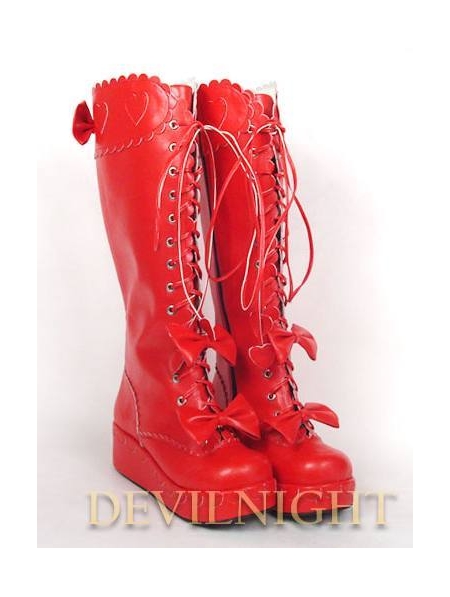 White/Black/Pink/Red Cute Bow Lac-up Sweet Lolita Platform Boots