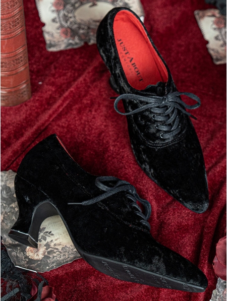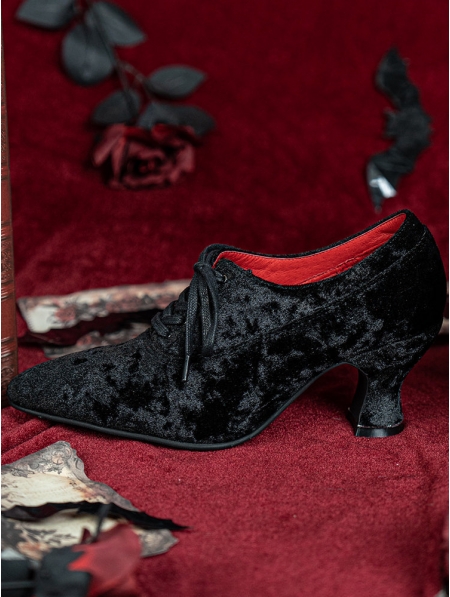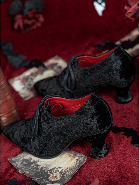 Black Gothic Victorian Heeled Lace-Up Velvet Shoes