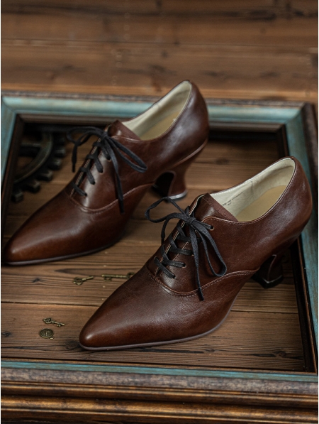 Brown Victorian Lace Up Vintage Oxford Leather Shoes