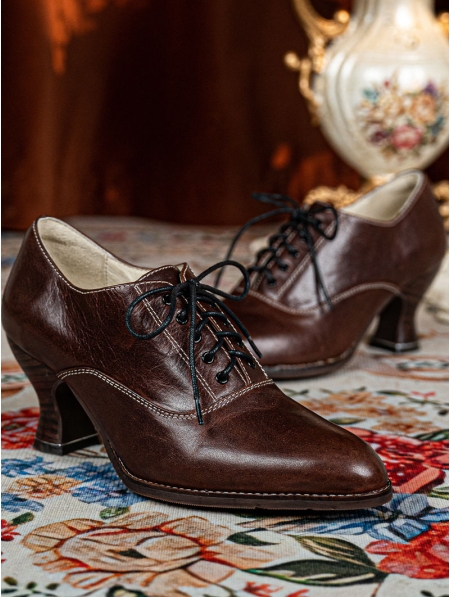 Brown Vintage Lace-Up Victorian Leather Oxford Heels