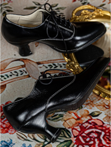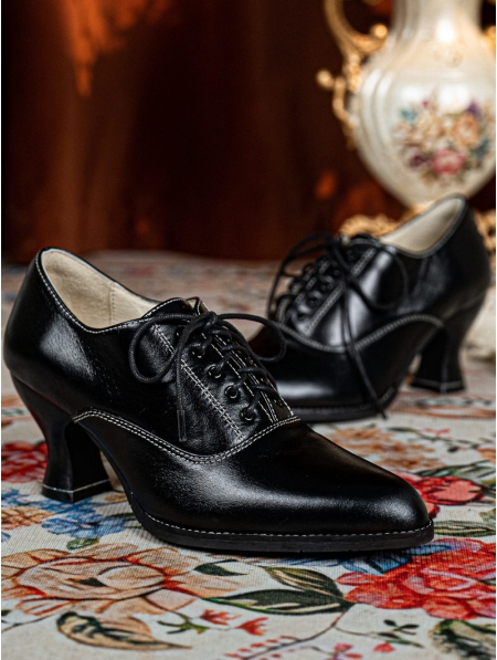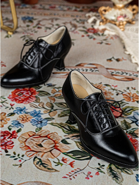 Black Vintage Lace-Up Victorian Leather Oxford Heels
