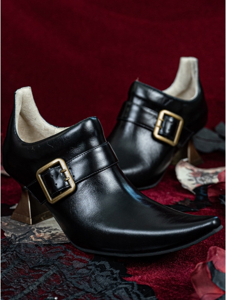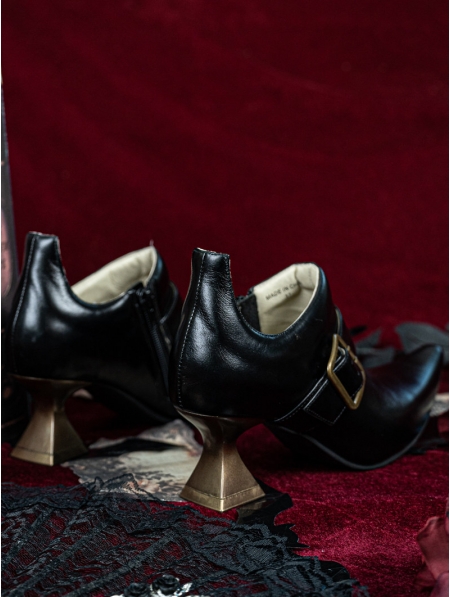 Black and Golden Buckle Pointed Toe Victorian Shoes