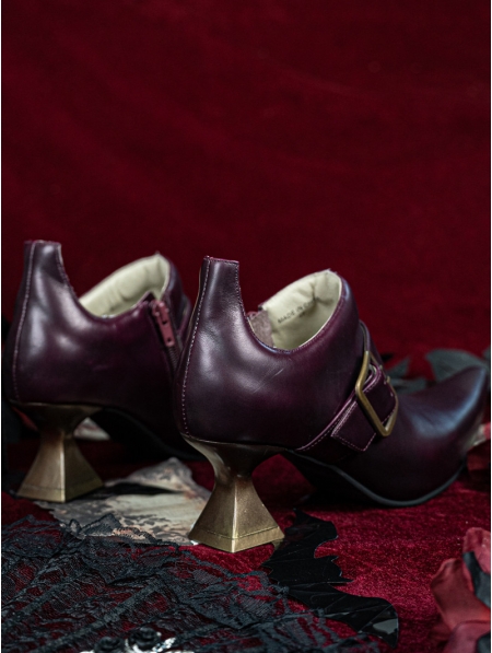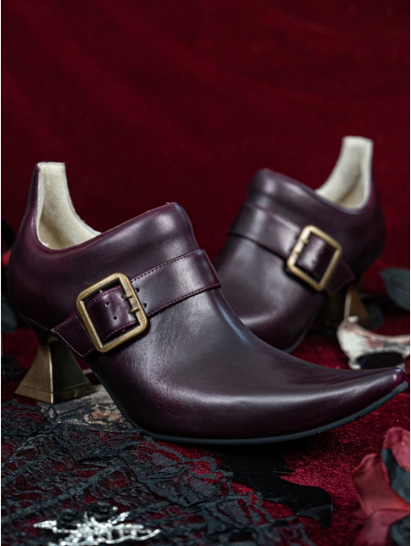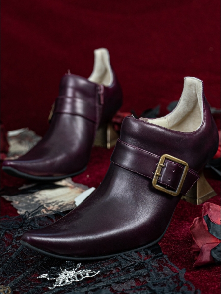 Purple and Golden Buckle Pointed Toe Victorian Shoes