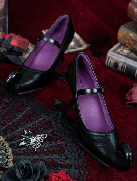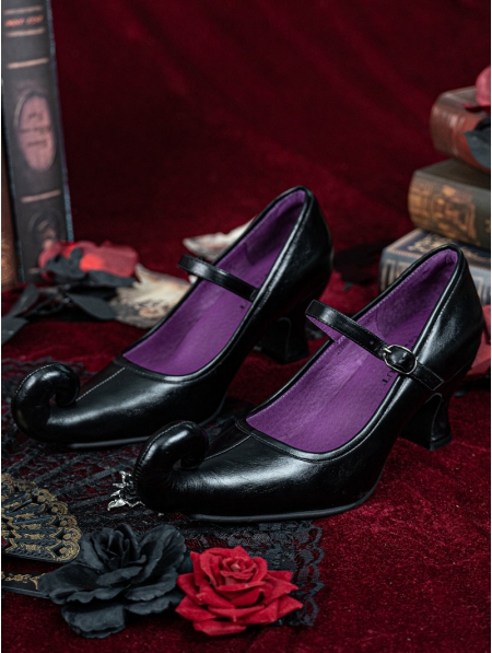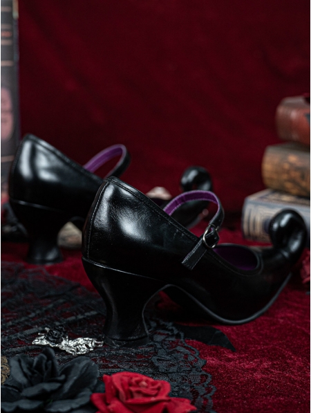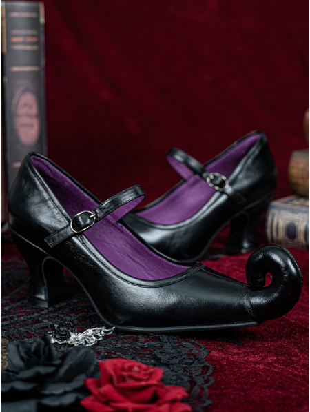 Black Retro Gothic Belted Curly Pointed Toe Shoes