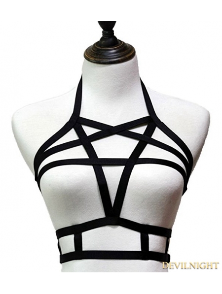 Black Double Layer Sexy Gothic Pentagram Harness Bra